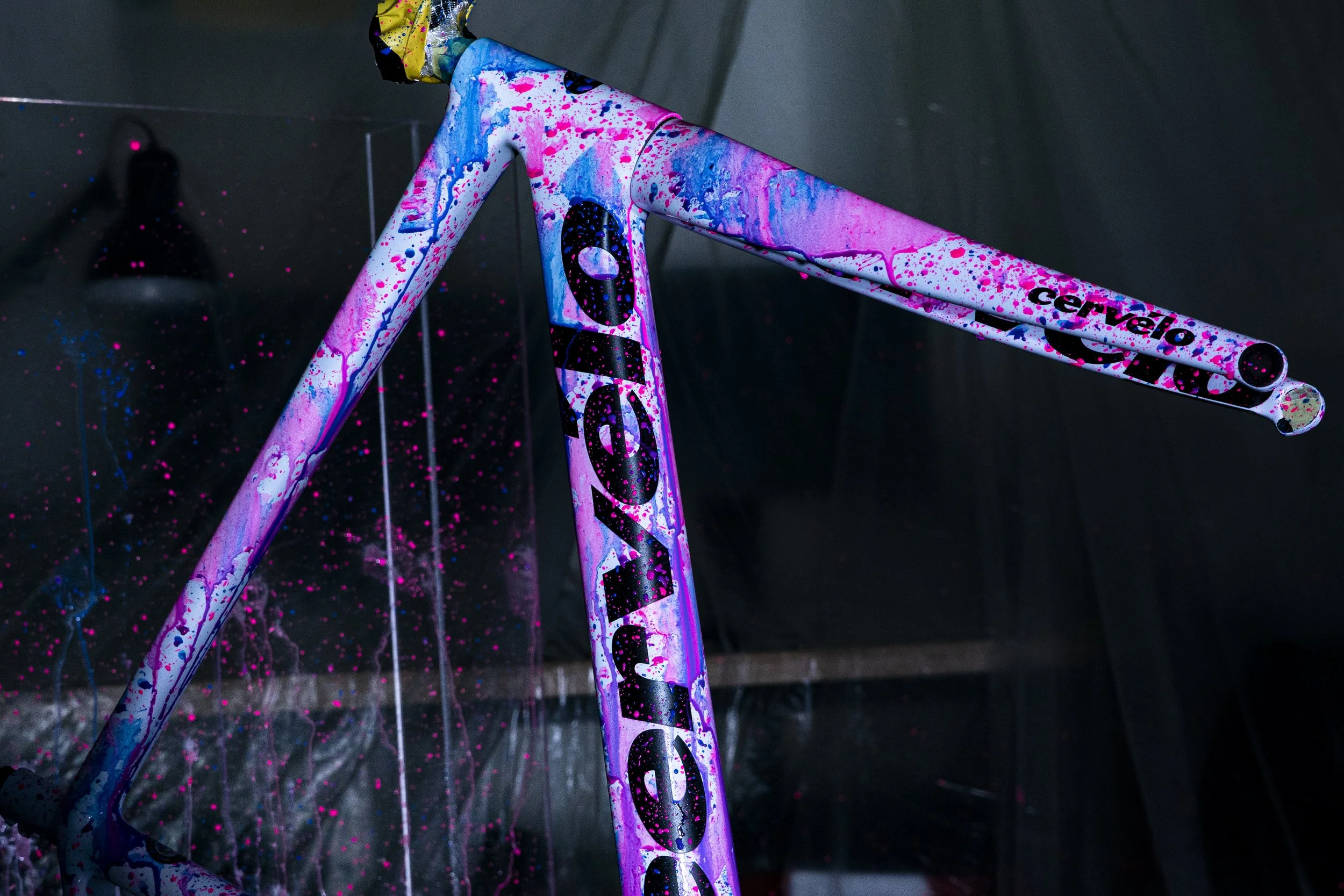 The custom painted Cervélo R3 (size 54) frame has been lovingly painted by Chris Hall, of Zero Lemon, with some friends and prepared and finished by Gun Control Custom Paint to provide a clean and professional finish to the bike.