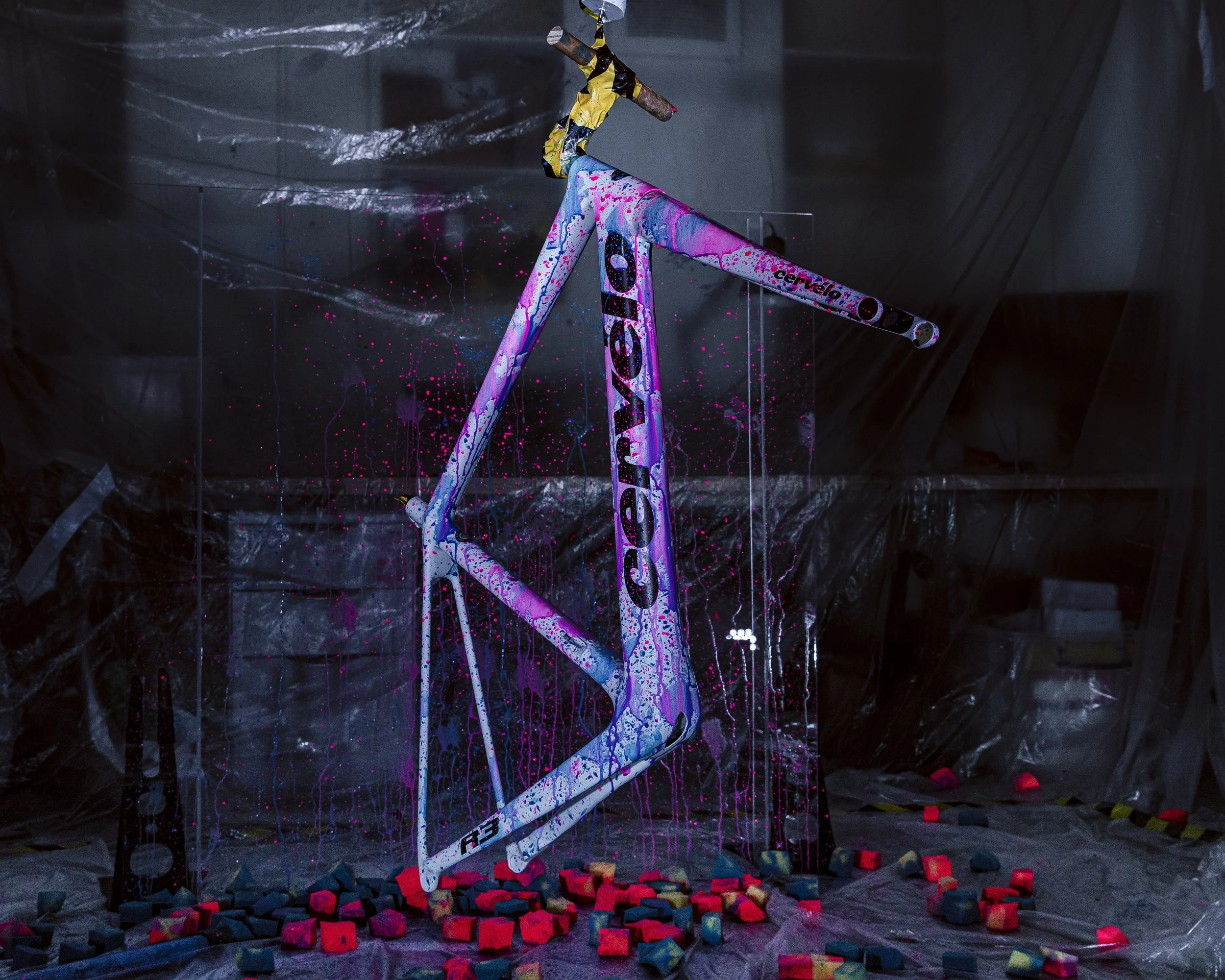 The custom painted Cervélo R3 (size 54) frame has been lovingly painted by Chris Hall, of Zero Lemon, with some friends and prepared and finished by Gun Control Custom Paint to provide a clean and professional finish to the bike.