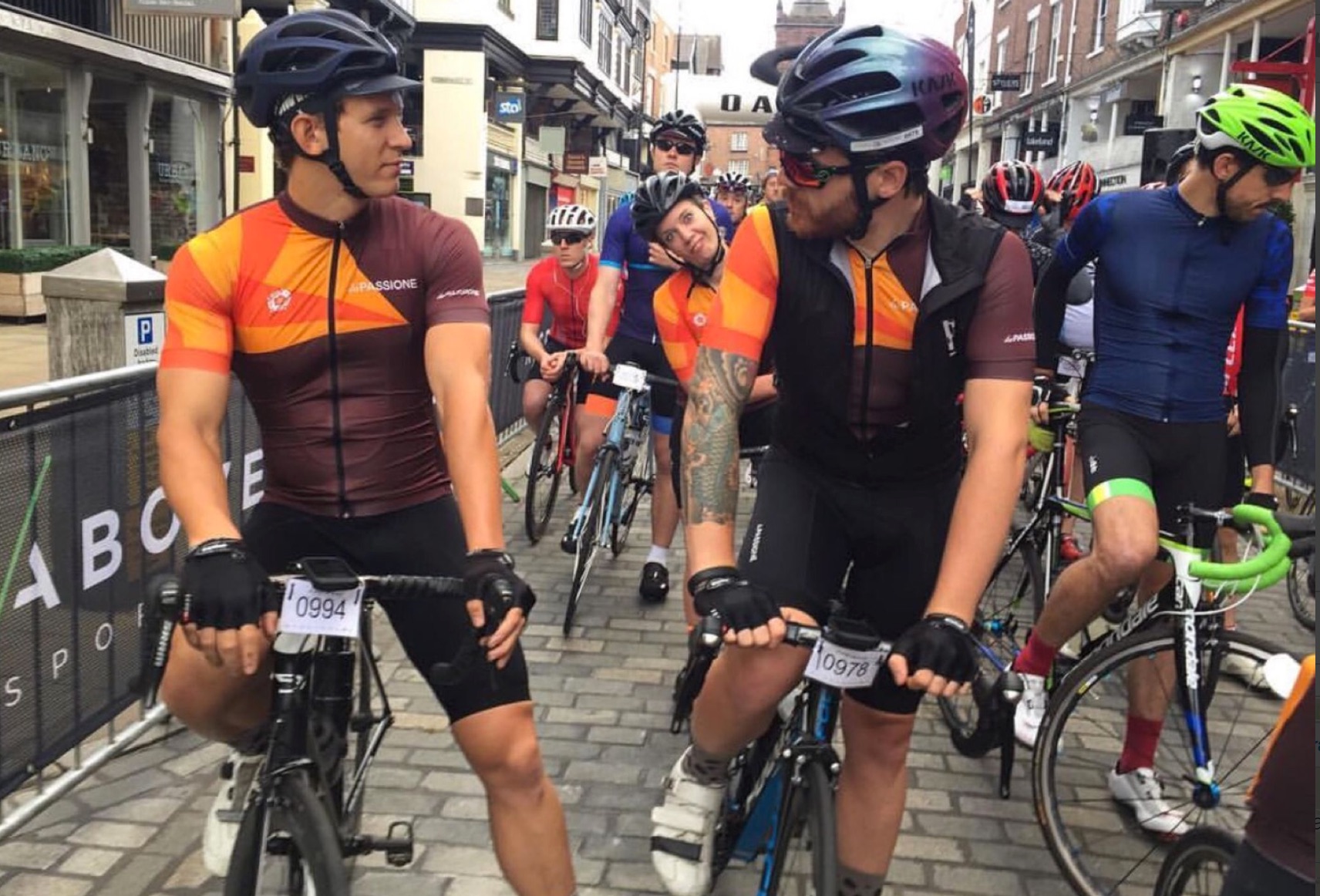A spare jersey provided by Attacus CC helped to cover up the broken skinsuit.